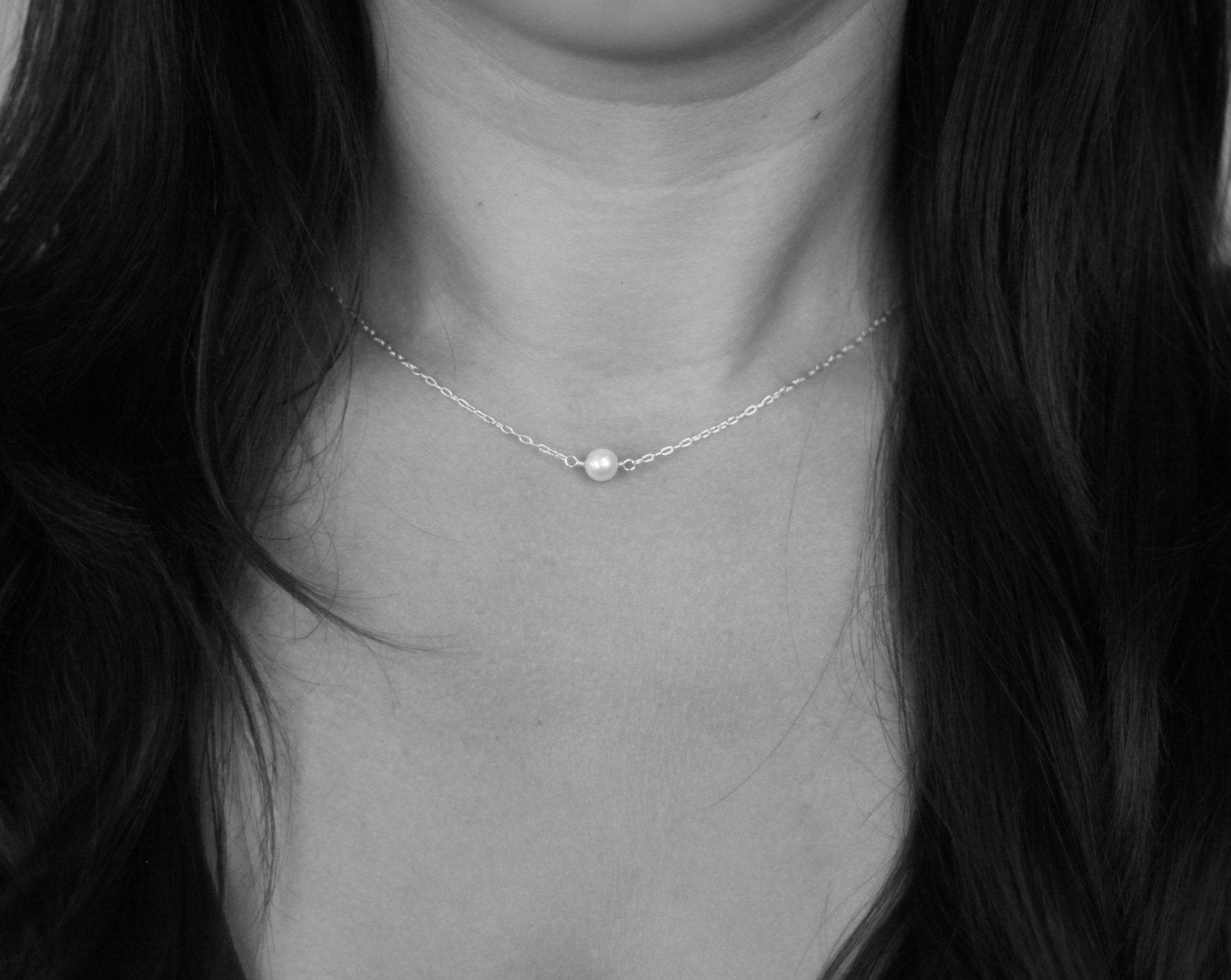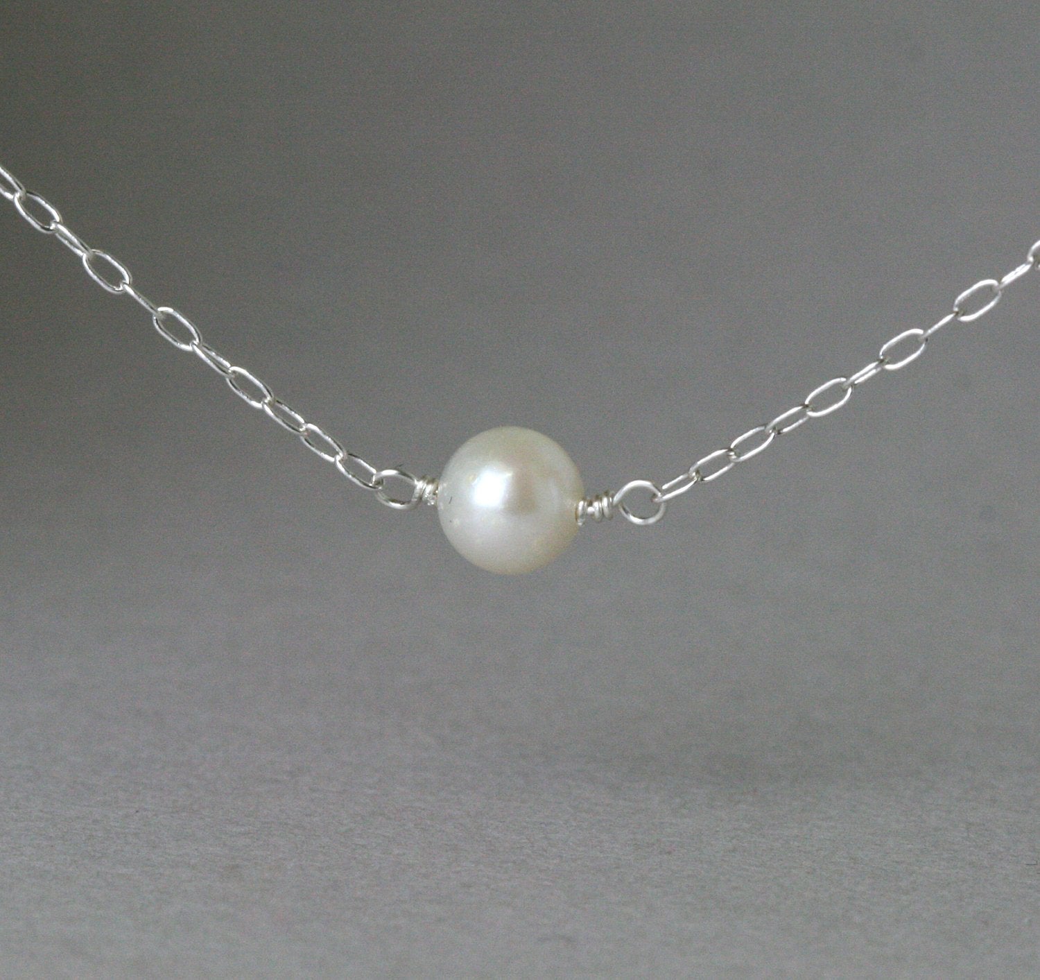 Single freshwater ivory white pearl (5-6mm) suspended on sterling silver chain.