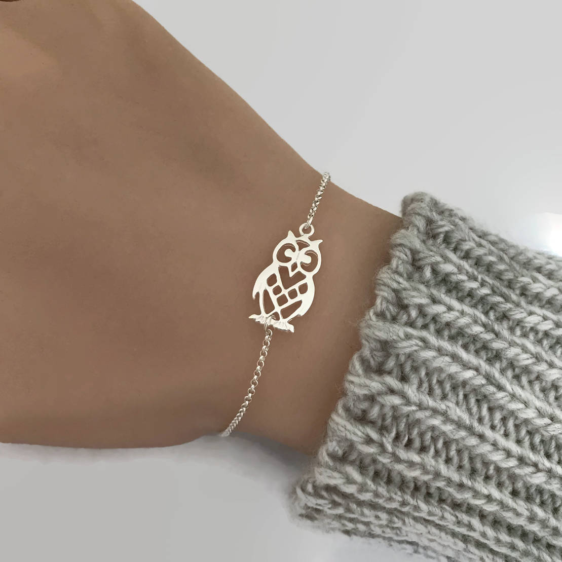 Sterling silver owl bracelet. The owl is a symbol of wisdom, truth, patience, foresight and knowledge. Owl bracelet is a perfect thank you gift for a teacher, exam or graduation gift, or an ideal gift for bird lovers.