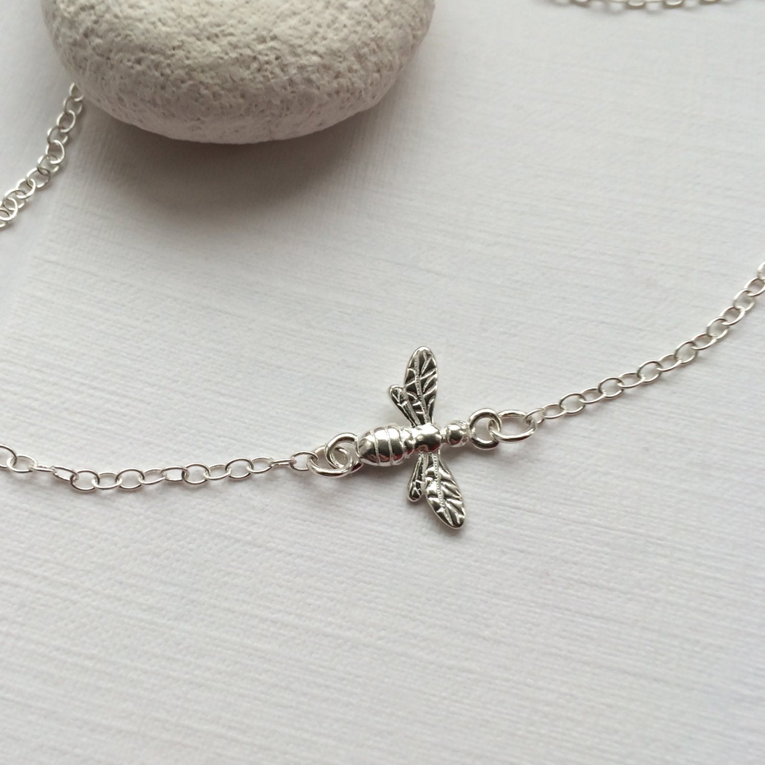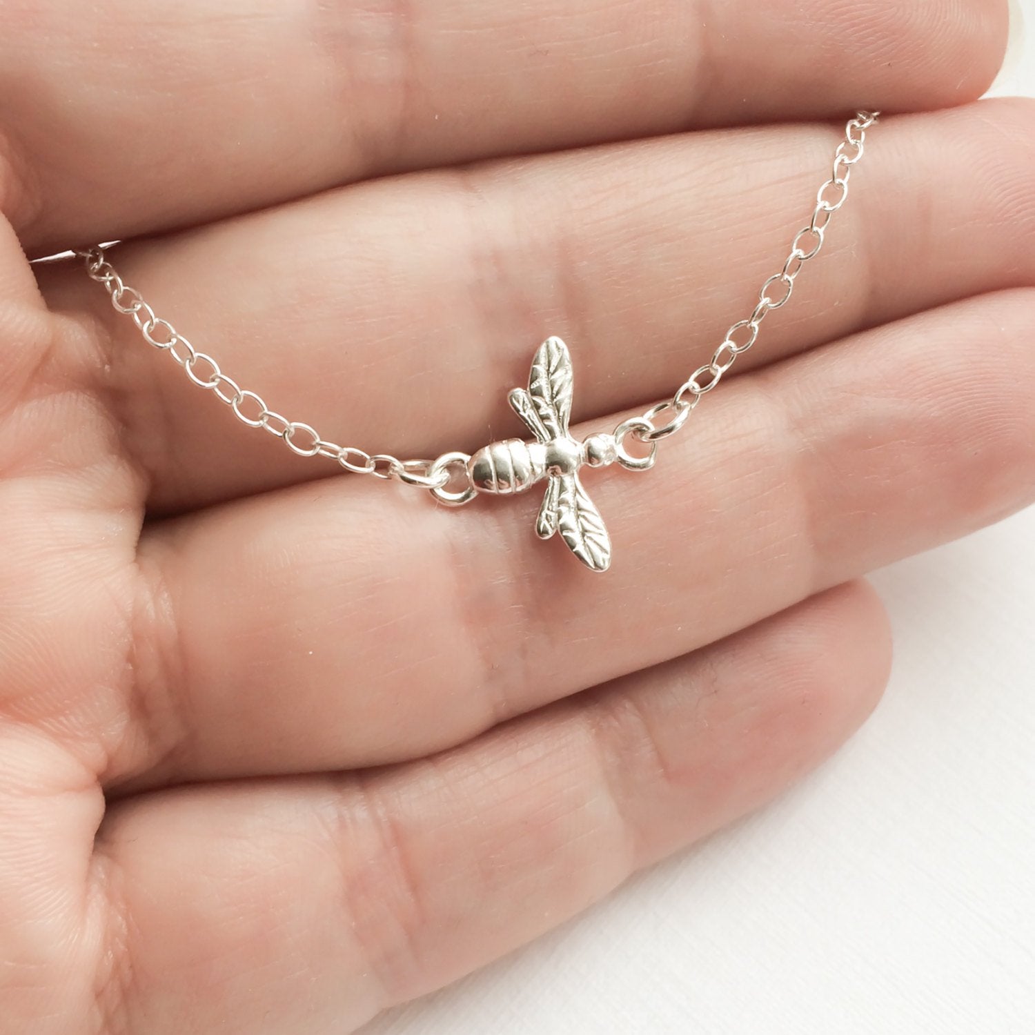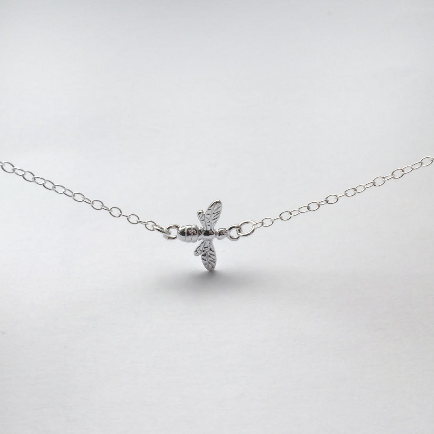 This sterling silver necklace features tiny and adorable sterling silver bee (15mm).